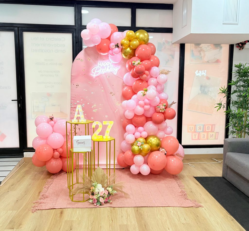 Las decoraciones de Sala Brunet están a cargo de nuestro colaborador DECOROXVI, con quien contamos con tarifas especiales para nuestros clientes. Al contratar la decoración junto con el alquiler de la sala, disfrutas de un 20% de descuento sobre la tarifa habitual.